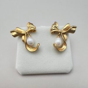 3D Bow Pearl Stud Earrings | Gold-Plated Statement Design3D Bow Pearl Stud Earrings | Gold-Plated Statement Design