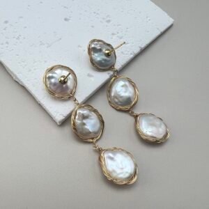 成为第一个“Long Baroque Pearl Dangle Earrings | Handwired Gold Statement Design” 的评价者